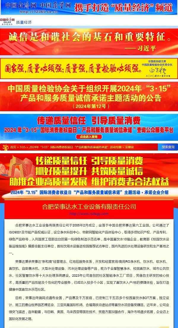- 熱烈祝賀榮事達在2024年全國“3·15”活動中斬獲“全國凈水行業質量領先品牌”、“全國產品和服務質量誠信示范企業”等七項殊榮