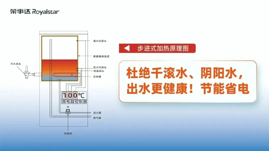 設備采用了多級過濾與RO反滲透技術,能夠有效濾除水中的泥沙、鐵銹、重金屬、余氯等有害物質,確保水質干凈、安全,出水達到直飲標準。同時,步進式加熱設計避免了“陰陽水”的產生,保證了連續供應開水的品質。