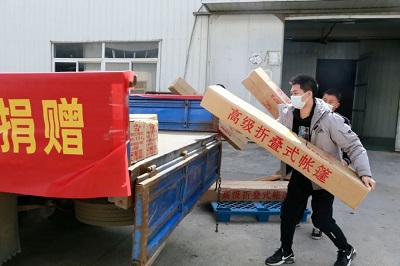 4月8日榮事達水工業集團工作人員以最快的速度進行物資的裝載,滿載著抗疫物資,發往37℃的愛活動統籌處。
